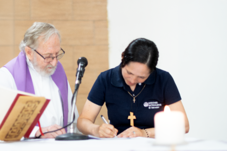 Ont participé à la célébration le curé, le Père Álvaro Molina ; le Directeur des Œuvres Pontificales Missionnaires (OPM) du Salvador, le Père Cristóbal Zabala ; ainsi que des membres, associés et collaborateurs de la SMÉ, accompagnés de plusieurs agents pastoraux des OPM El Salvador.
