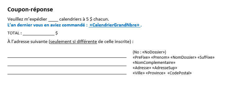 • Nous vendons également notre calendrier grand format à nos bureaux. Il en coûte 4 dollars pour se le procurer.