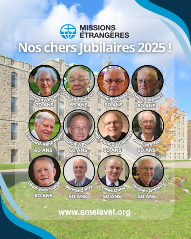Cette année, nous célébrons avec une profonde gratitude nos prêtres jubilaires de la Société des Missions-Étrangères, des frères qui ont consacré leur vie à l’annonce de l’Évangile et au service des peuples en mission.